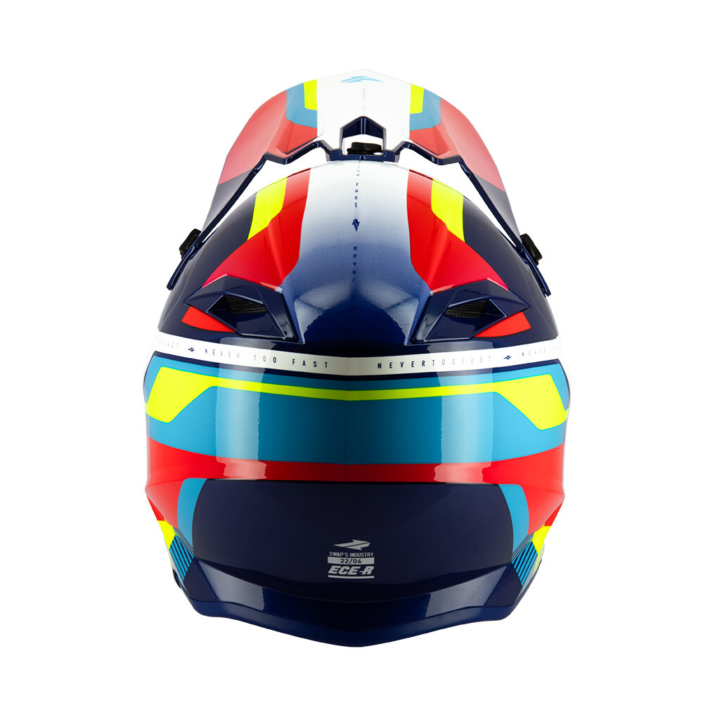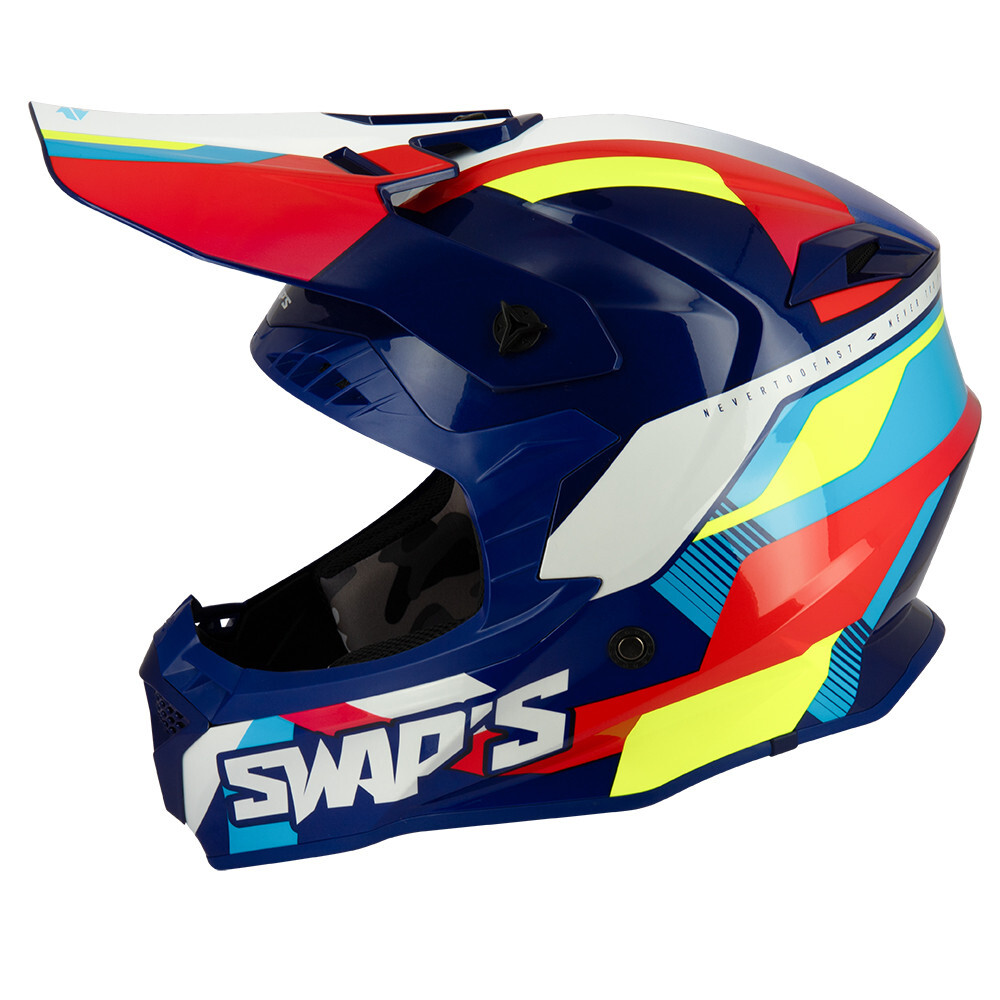 स्वैप्स S849 2फास्टर 4फ्लैश हेलमेट, स्वैप्स का एक मोटोक्रॉस या एंड्यूरो हेलमेट है, जिसे गहन और सुरक्षित उपयोग के लिए डिज़ाइन किया गया है। थर्मोप्लास्टिक रेज़िन से बना, इसमें डबल क्लोज़र, बकल और वेंटिलेशन जैसी सुविधाएँ हैं, और यह ECE 22-06 मानक का अनुपालन करता है।