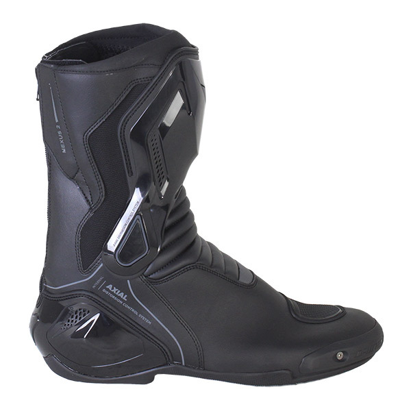 डाइनीज़ नेक्सस 2 स्पोर्ट मोटरसाइकिल बूट माइक्रोफ़ाइबर और डी-स्टोन से बने हैं, जिनमें नायलॉन हील इन्सर्ट है। ये बूट बदली जा सकने वाले थर्मोप्लास्टिक स्लाइडर्स, साथ ही विशेष डाइनीज़ एक्सियल डिस्टॉर्शन कंट्रोल सिस्टम सुरक्षा प्रणाली और नायलॉन हील इन्सर्ट के साथ डिज़ाइन किए गए हैं। ये संयुक्त विशेषताएँ उच्च स्तर की सुरक्षा सुनिश्चित करती हैं, अधिकतम आराम प्रदान करती हैं और हल्की होती हैं।